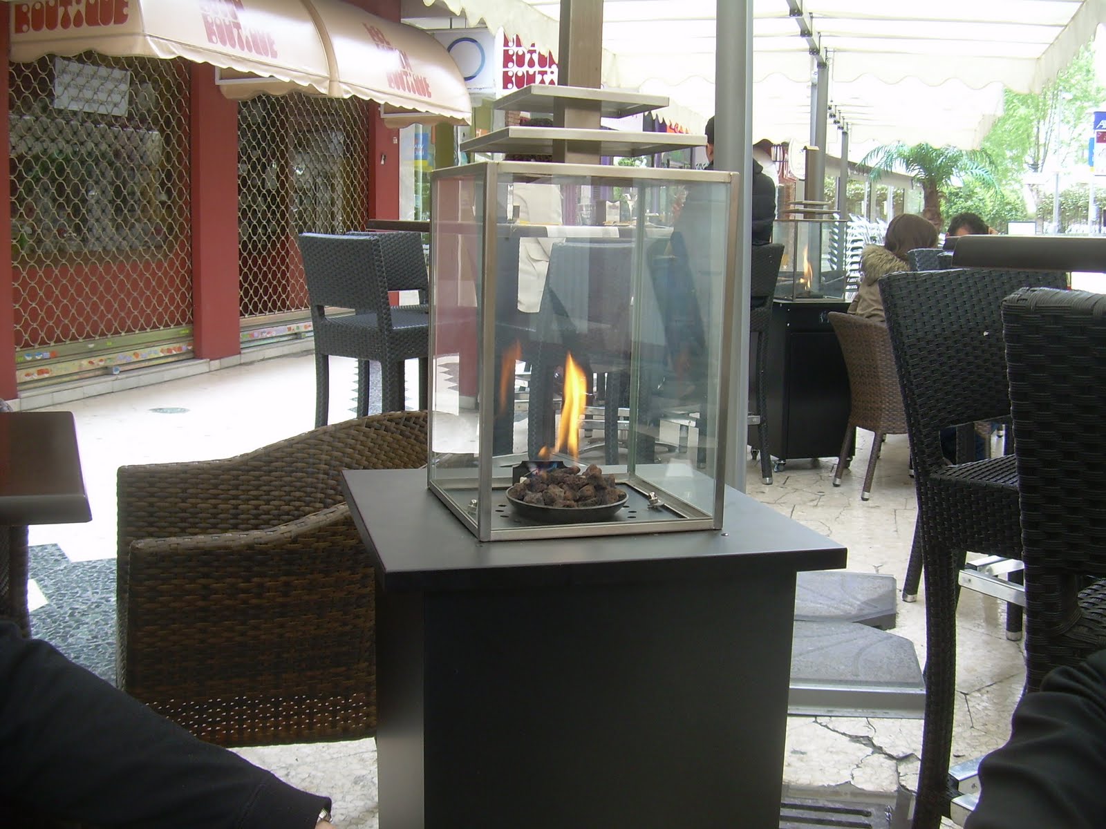 Sweet outdoor heater at this classy restaurant we ate at one day for lunch. By the way it had the nicest bathroom I've ever seen.